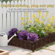 Used commonly in European gardens, these natural willow edgings are ideal in the outdoors where it's needed to define garden areas or use them to separate walkways. These rustic edgings are made from tightly woven canes and will make a wonderful addition to your home and garden as well as being economically sustainable and more environmentally friendly than plastic or chain fences. Made to be flexible enough to curve gently around corners. It will only bend to about 30 degrees. It will not bend to 90 degrees. This product is 16" h. It consists of 8" h of woven area and 8" h of legs. You will only see 8" of fencing, due to the legs being put in the ground.